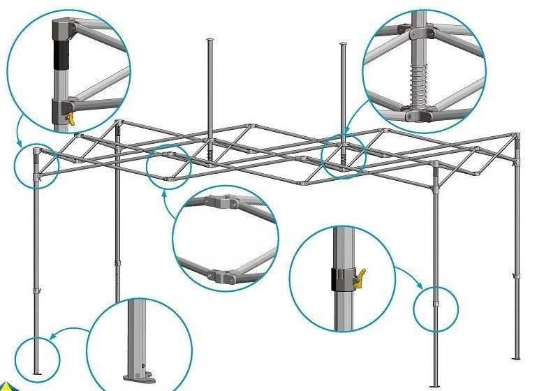 Châssis milieu de gamme, 100 % en aluminium octogonal 45 mm, garantie de 5 ans, idéal pour le format 3x3 m et 4,5x3 m.